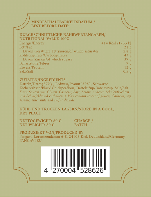 Built on chickpeas with dates and real peanut butter. Lightly salted. Sweet, salty, filling. No nonsense. No marketing hype. Just function and taste in one bite.
